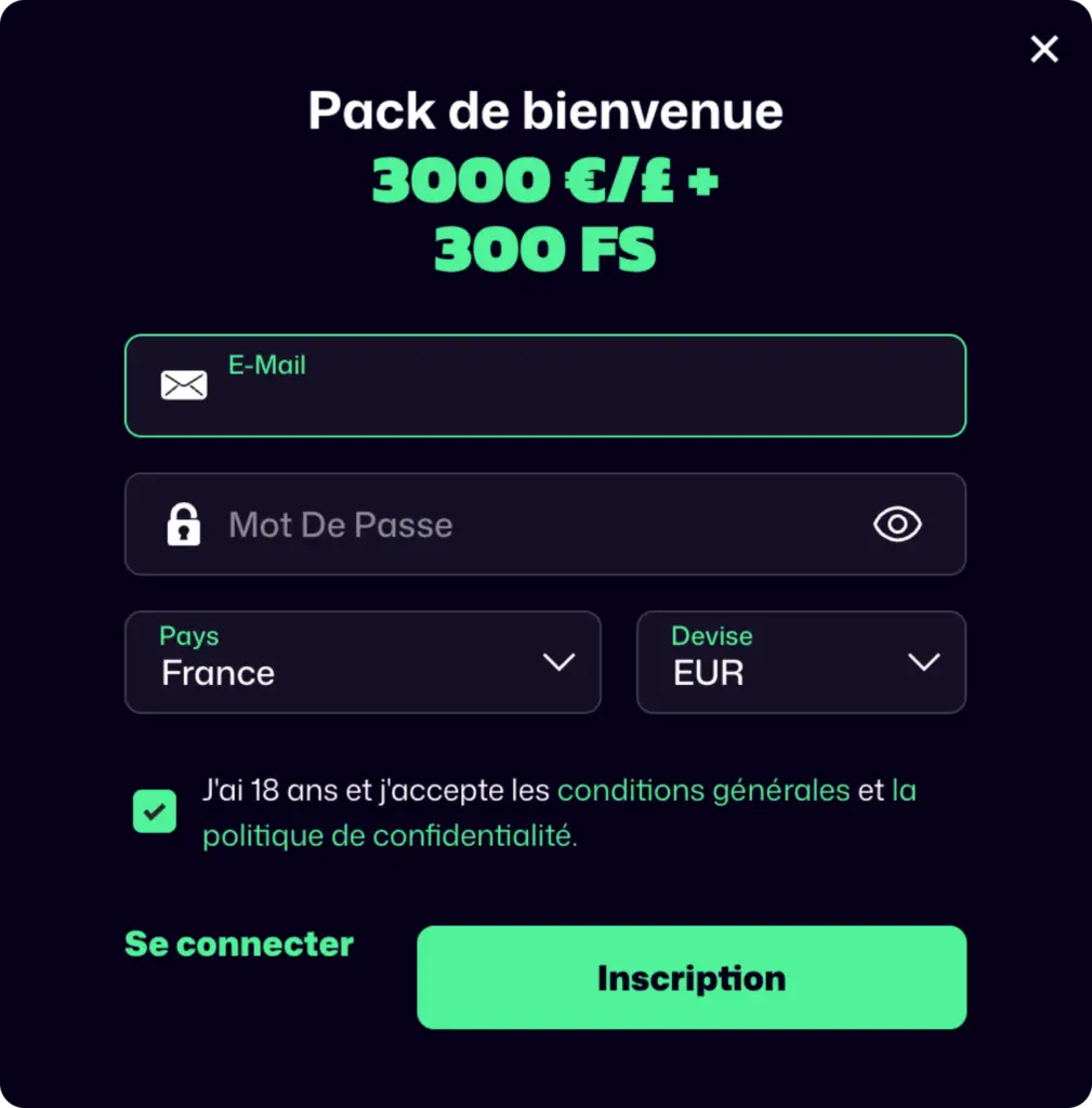 Le dépôt minimum est généralement de 20 € (ou équivalent dans la devise que vous avez choisie). La plupart des dépôts apparaissent instantanément sur votre compte.